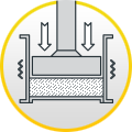 Гидравлический пресс выполняет сжатие арболита на 100 мм.